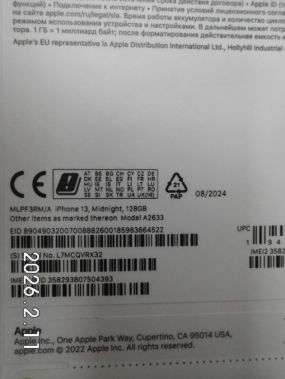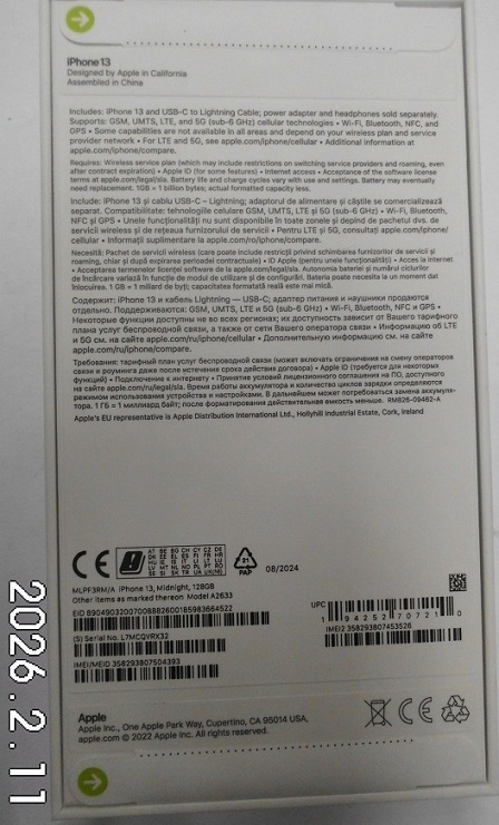 | Fajta, jelleg | 128 GB, IMEI: 358293807504393 |