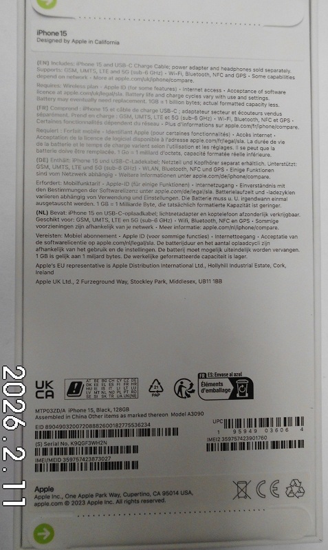 | Fajta, jelleg | 128 GB, IMEI: 359757423873027 |