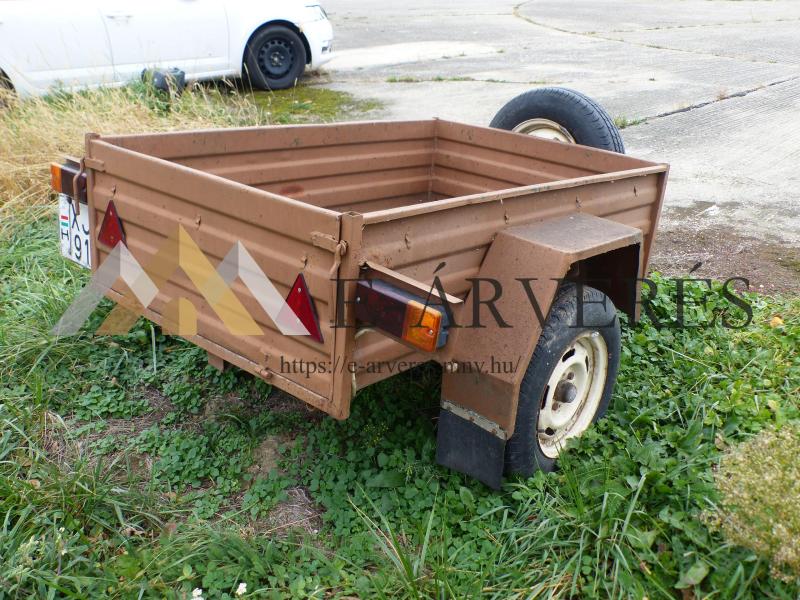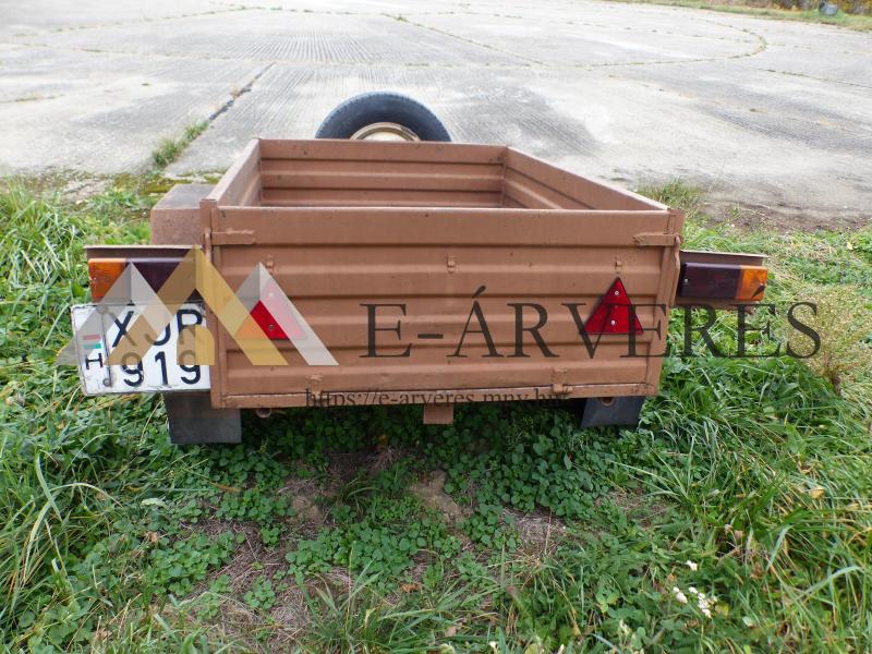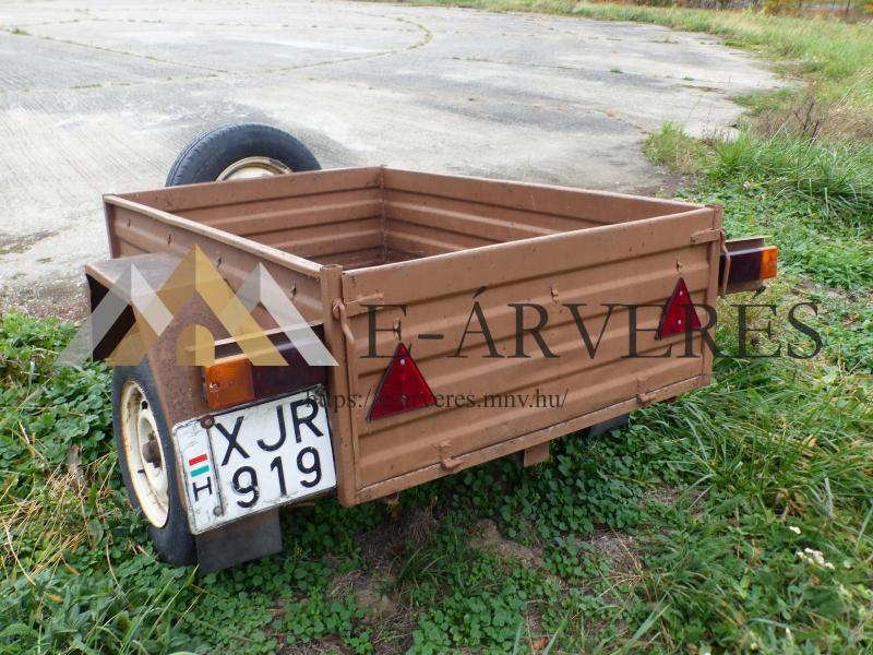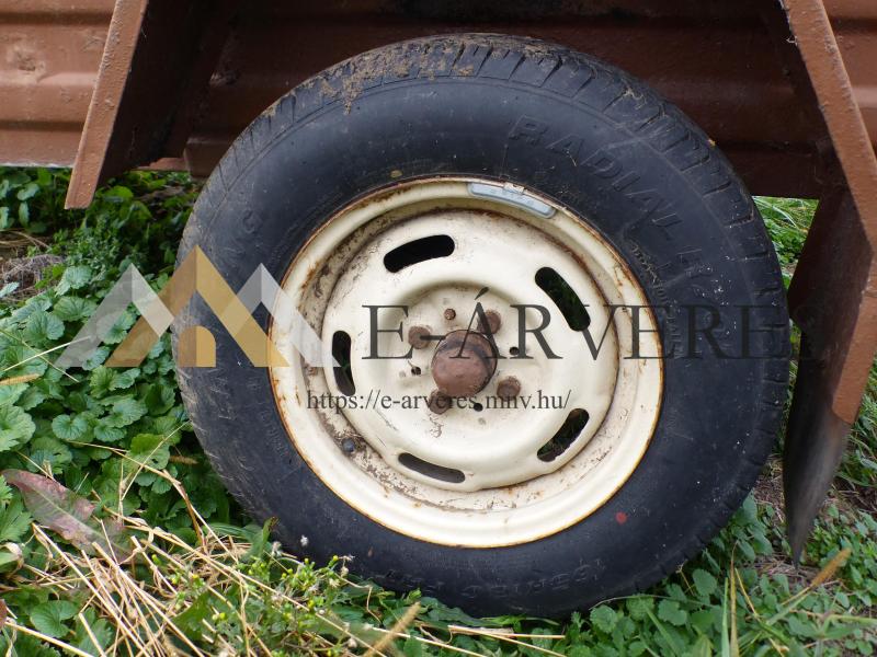 A jármű adatai: Típus: ÓBUDA 250 M Frsz.: XJR 919 Alvázszám: 2002007885 Gyártási év: 1985 Forgalomba helyezés időpontja: 1990.10.25. Fényezés: Barna Műszaki vizsga érvényes: Lejárt Utánfutó állapota: Korának megfelelő Gumik típusa/állapota: LINGLONG 165 R 13 30% cserére szorulnak Pótkerék sérült, cserére szorul